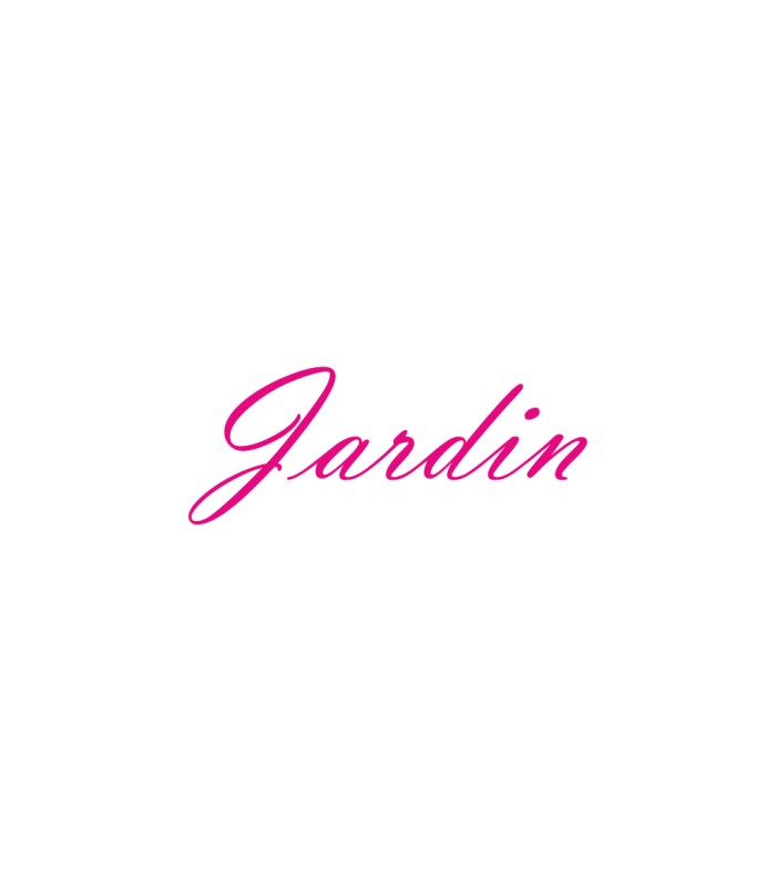 Interieurstickers met tekst 'Jardin', verkrijgbaar in verschillende afmetingen en kleuren.