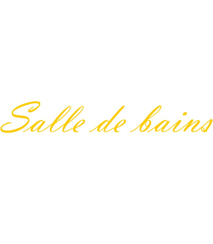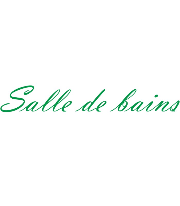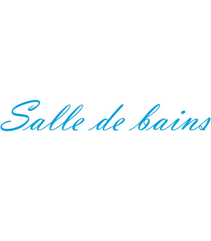 Interieurstickers met tekst 'Salle de bains', verkrijgbaar in verschillende afmetingen en kleuren.