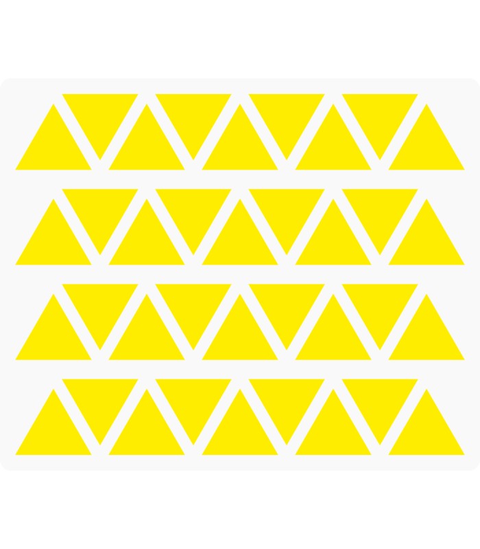 De stickers hebben een afmeting van 20 mm per zijde en op een vel zitten 36 driehoek markeringsstickers.