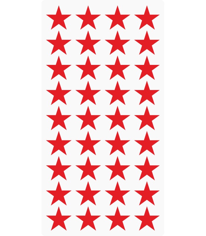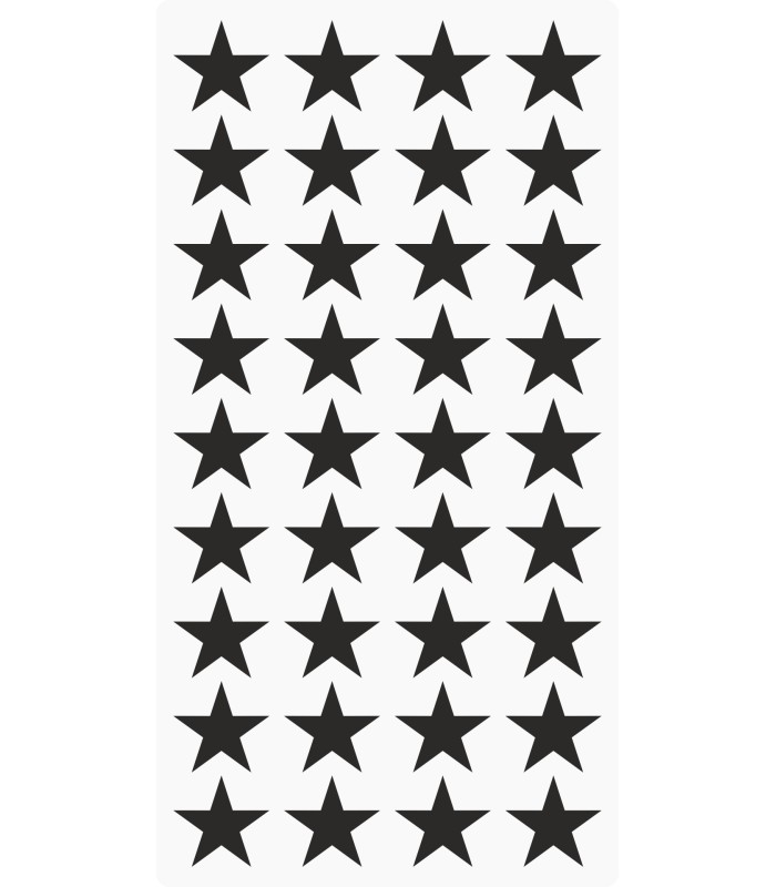 De stickers hebben een afmeting van 20 x 20 mm en op een vel zitten 36 ster markeringsstickers.