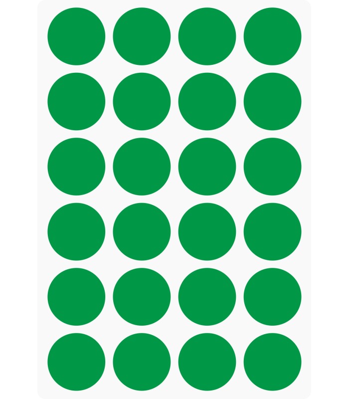 De stickers hebben een diameter van 25 mm en op een vel zitten 24 ronde markeringsstickers.