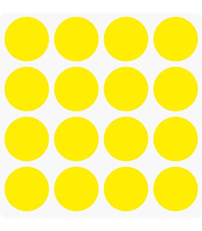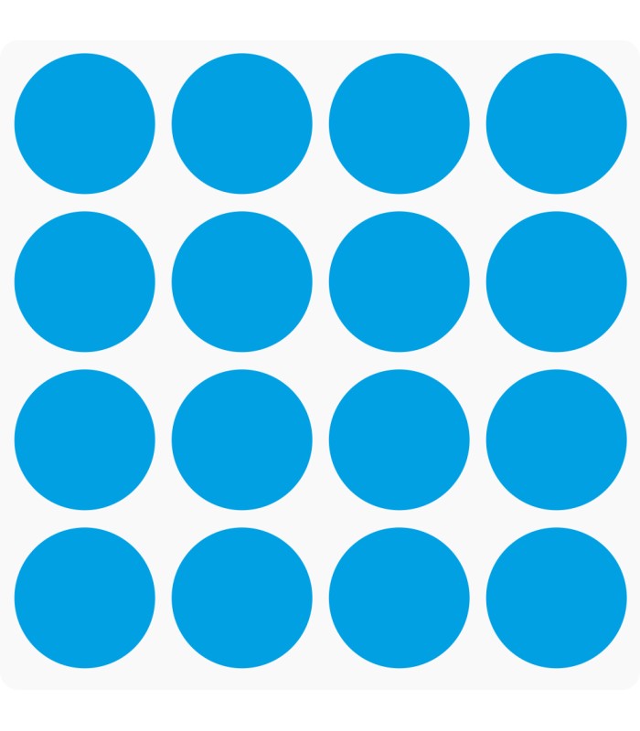 De stickers hebben een diameter van 30 mm en op een vel zitten 16 ronde markeringsstickers.
