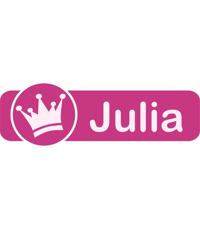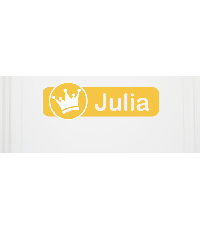 Deurstickers met eigen naam en kroon afbeelding, verkrijgbaar in verschillende afmetingen en kleuren.