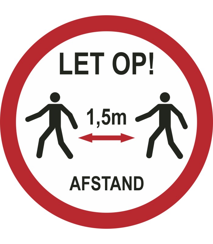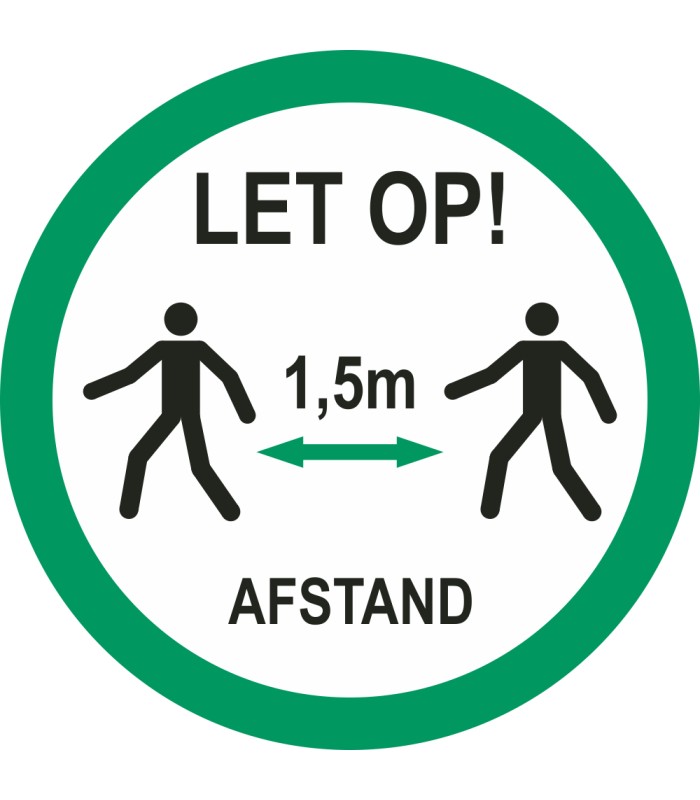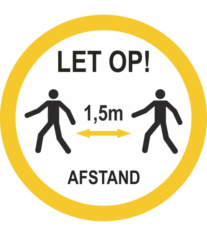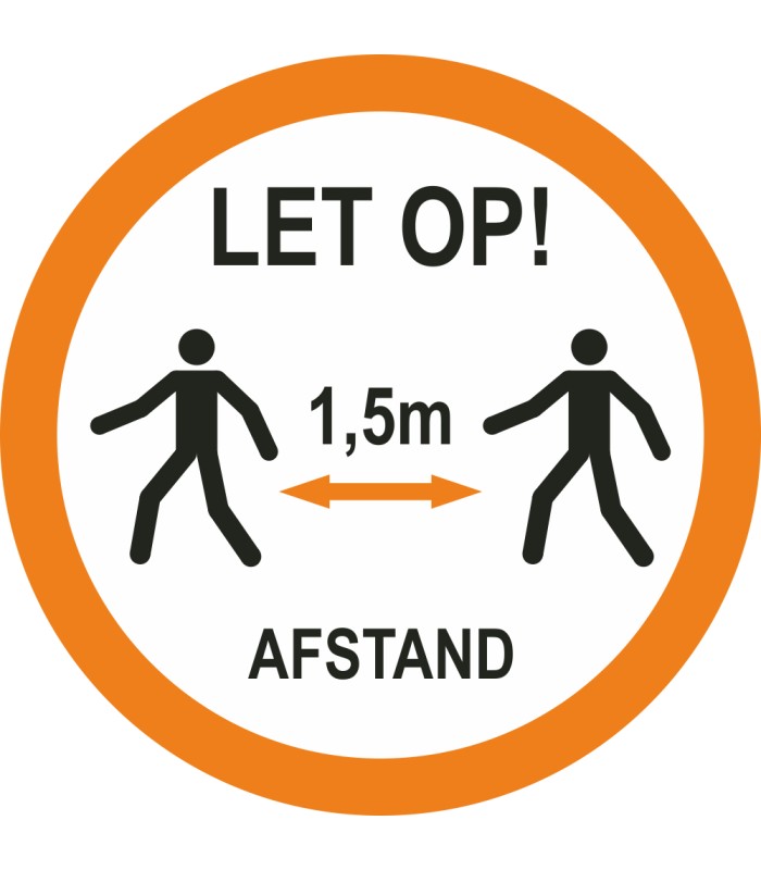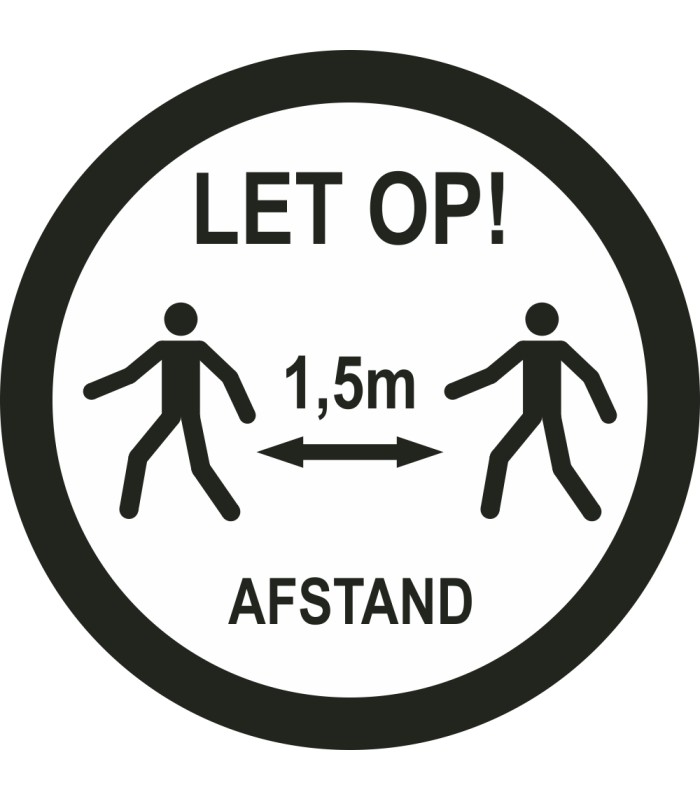 Geef duidelijk aan dat er 1,5 meter afstand gehouden dient te worden met deze ronde stickers.