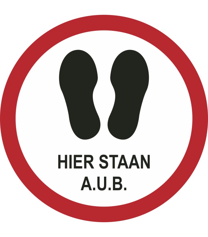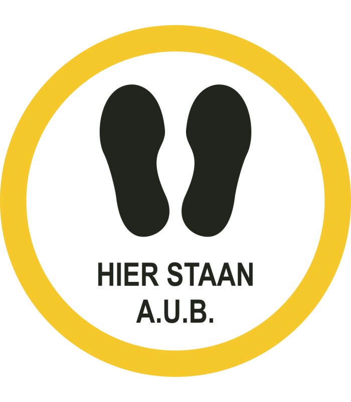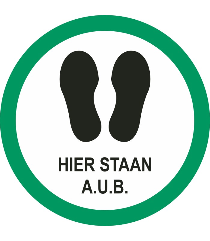 De 'Hier staan a.u.b.' vloerstickers zijn verkrijgbaar in verschillende afmetingen en kleuren en worden voorzien van een stevig antislip laminaat. Hierdoor wordt de afbeelding extra beschermd en wordt voorkomen dat mensen uitglijden over de sticker.